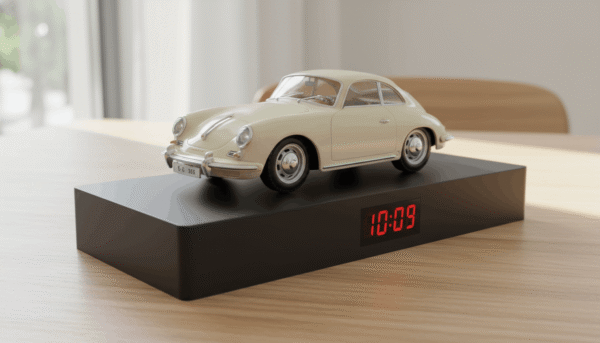 This porsche alarm clock captures the elegance and heritage of the iconic Porsche 356B Coupe. Designed for collectors and classic car enthusiasts, it blends vintage styling with immersive sound and light features.
