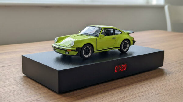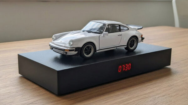 The Porsche 911 alarm clock is a handmade desk clock inspired by one of the most iconic sports cars ever built. Created using a real 1:24 scale Porsche 911 collectible model, this alarm clock combines timeless design with immersive automotive functionality.