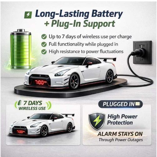 Bring automotive passion right onto your nightstand or desktop. This Hypercar Alarm Clock is crafted as a precision widebody sports car replica packed with immersive effects, practical functionality, and premium design — making it both a high-impact decor piece and a reliable everyday timekeeper.